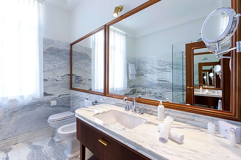 Overlooking either the Piazza D’Azeglio Park or the hotel's private garden, this junior suite features a seating area with a small table and chairs, an armchair and a Nespresso coffee machines. The marble bathroom offers free toiletries.